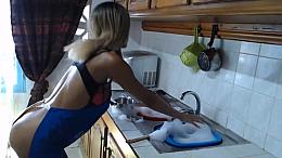 Willing German Latex Housewife in the garden