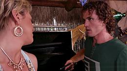 Sexy big tits horny MILF stepmom Brittany Andrews comes home tipsy and seduces stepson after a bad visit to her husband work.