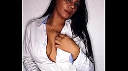 Handsome buxomy latin MILF Uma Stone let the dude cum on her face at workplace