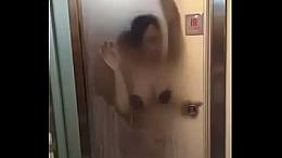 Pregnant milf with a big belly in the shower masturbates her hairy pussy. Amateur fetish.