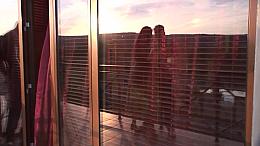 Busty milf attached a dildo to the window and doggystyle fuck a hairy puss