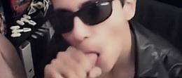 Hairy mature rimming in front of window