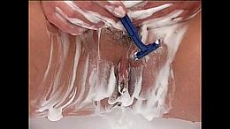 Sweet dorky wife shows off, showers, shaves, and fingers herself