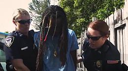 Blonde cops blowing long black dick