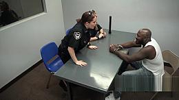 Suspect gets his big black cock sucked and taken by horny milf cops